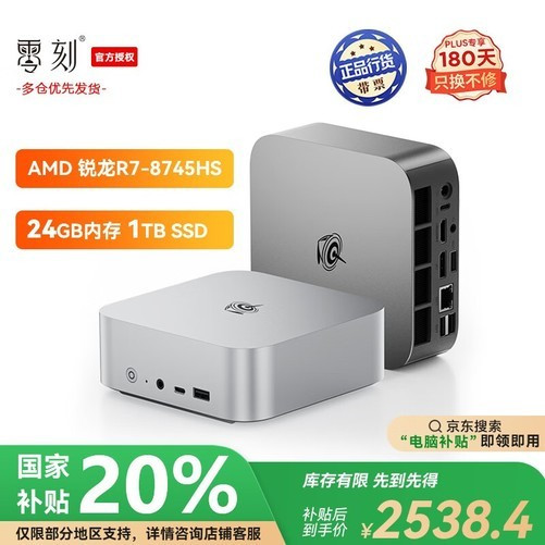 零刻SER8迷你电脑,凭借高性能AMD锐龙78核16线程处理器,性能超越传统笔记本电脑,让您的办公、学习和娱乐体验更流畅。其外形小巧便携,机身厚度仅9.5mm,采用深空灰色金属外壳设计,展现出硬朗而时尚的风格。另外,内置24G内存和1TB固态硬盘,运行速度更快,存储空间更大。现在购买还可享受优惠价格,只需2538.4元即可到手,相比原价便宜了不少哦!如果您对这款高性能迷你电脑感兴趣的话,请一定要抓住这次促销机会!
